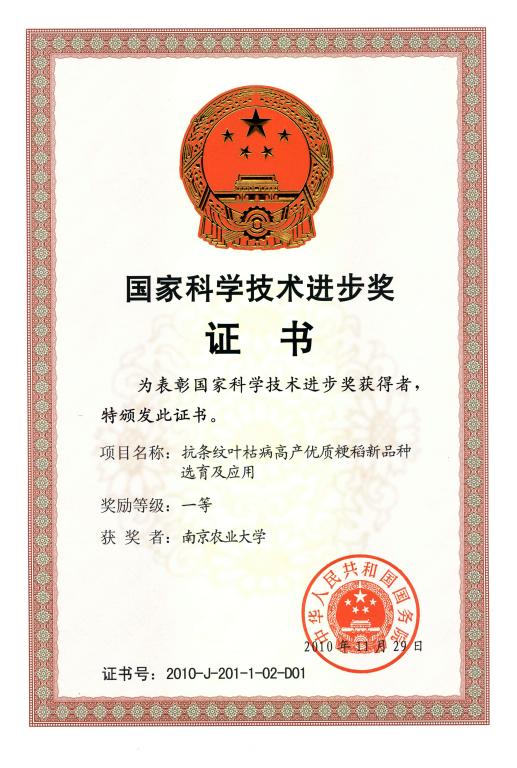 水稻条纹叶枯病从2000年开始在我国南方粳稻区大面积流行,每年损失45亿元,给水稻生产带来巨大危害。该项目开展了抗条纹叶枯病高产优质粳稻新品种选育及应用研究。提出了灰飞虱非嗜性和抗生性鉴定、强迫饲毒与集团接种相结合的水稻条纹叶枯病抗性鉴定方法,建立了规模化水稻条纹叶枯病抗性鉴定技术体系,筛选抗病种质212份。挖掘和标记水稻条纹叶枯病抗性基因/QTL,创建分子标记聚合育种技术体系,选择准确率达95%以上,创制抗病优质新种质16份。构建了南方粳稻品种选育与应用的综合平台。选育出适应不同生态区的早中晚熟系列抗条纹叶枯病高产优质新品种10个;制定栽培技术规程13个;2007-2009年新品种推广8314.57万亩,社会效益116.1亿元,2009年推广面积占南方粳稻区种植面积的78%。累计推广13634.17万亩,社会效益190.14亿元。获新品种权9项,获得国家发明专利2项,申请国家发明专利4项,发表论文139篇,其中,在Plant J,Genetics,TAG,PMB等杂志发表SCI论文46篇。本项目有效解决了南方粳稻区受条纹叶枯病流行危害的难题,极大地促进了水稻生产的发展,为保障我国粮食安全、农民增收和农业可持续发展做出了重要贡献。
