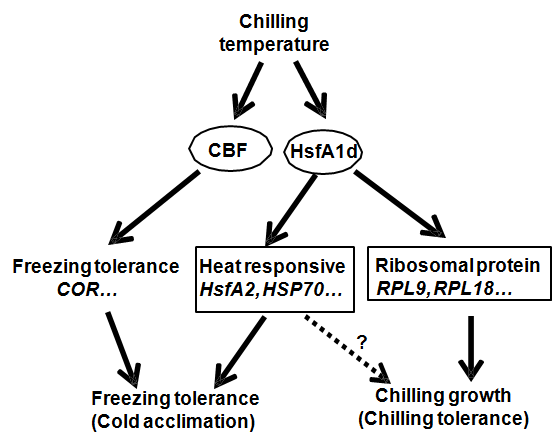 低温是抑制植物生长并限制植物地理分布最重要的环境因素之一。在诸多植物对低温的响应机制中,目前研究最多且最为清楚的是冷驯化,即经过非冻(0℃以上)低温处理后,可提高植物耐冻性(0℃以下)的现象。在拟南芥中,冷驯化主要依赖于3个CBF(C-repeat binding factor)转录因子对多个植物耐冻性相关COR(Cold responsive)基因表达的调控。然而,目前我们对植物如何响应0℃以上的非冻低温胁迫以及CBF是否参与0℃以上的植物低温响应知之甚少。因此,挖掘植物响应0℃以上低温的调控因子,解析低温影响植物生长的分子机制显得尤为重要。