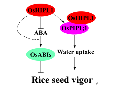 厂长资源 张红生教授团队一直致力于水稻种质资源创新、种子活力形成关键基因发掘和分子调控等研究。其团队利用一个染色片段置换系群体,在籼稻品种IR26中,鉴定到一个正调控水稻种子活力的主效QTL(Quantitative Trait Locus)qSV3。通过精细定位和图位克隆,并构建候选基因敲除突变体、回补和过表达等转基因材料,验证了qSV3位点候选基因编码一个刺猬互作蛋白类似蛋白OsHIPL1(hedgehog-interacting protein-like 1 protein)。在哺乳动物中,该蛋白作为信号转导靶点,作用于胚胎发育和肿瘤细胞代谢过程,在植物中未见该类基因的相关报道。研究发现,与对照(粳稻中花11)材料相比,构建的候选基因突变体Oshipl1和近等基因系NIL-qsv3材料的种子,在萌发过程中的内源脱落酸(ABA)合成相关基因(OsZEP和OsNCED4)表达上调,分解相关基因(OsABA8ox3)表达下调,内源ABA的含量显著增加。这些结果与转录组与种子萌发过程外施ABA的结果一致,说明OsHIPL1可能通过抑制ABA代谢和信号通路促进水稻种子萌发。利用酵母双杂交、BiFC和LUC等试验,发现OsHIPL1蛋白能与水稻水孔蛋白OsPIP1;1互作;与野生型材料的种子相比,突变体Oshipl1种子萌发中的吸水速率显著下降,回补和过表达转基因材料种子吸水速率显著提高;同时,Oshipl1的OsPIP1;1基因在突变体中的表达显著下降,在回补转基因材料中显著上升。表明,OsHIPL1不仅能够通过ABA代谢和信号途径调控水稻种子活力,还能够通过影响水孔蛋白OsPIP1;1调节种子萌发过程中的水分吸收,提高水稻种子活力。在温室试验和田间直播试验条件下,OsHIPL1可以显著提高水稻种子活力,利用已测序192份水稻种质资源,鉴定了OsHIPL1基因的优异单倍型Hap1,可以显著提高水稻种子活力。