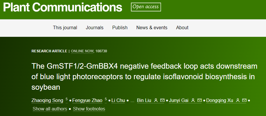 《Plant Communications》发表国家大豆改良中心盖钧镒院士和许冬清教授团队“The GmSTF1/2-GmBBX4 negative feedback loop acts downstream of blue light photoreceptors to regulate isoflavonoid biosynthesis in soybean”