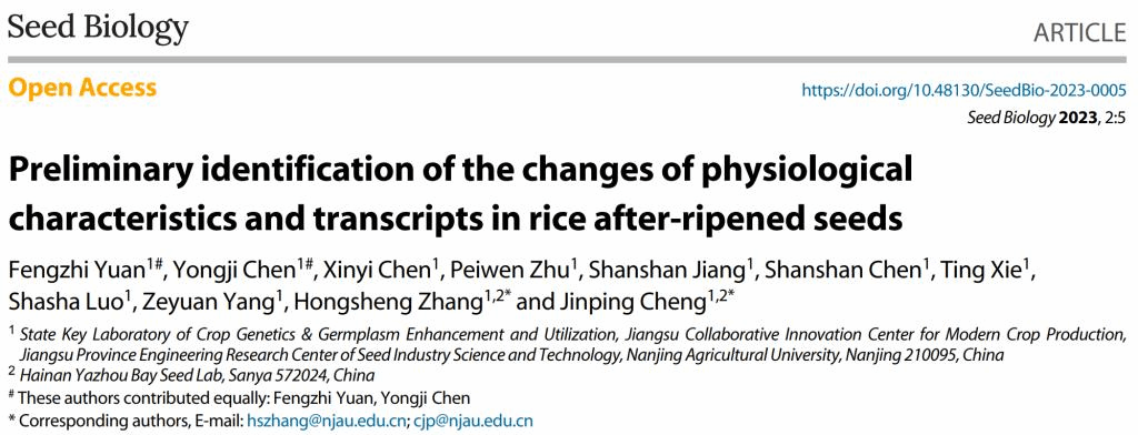 《Seed Biology》发表张红生教授团队“Preliminary identification of the changes of physiological characteristics and transcripts in rice after-ripened seeds ”