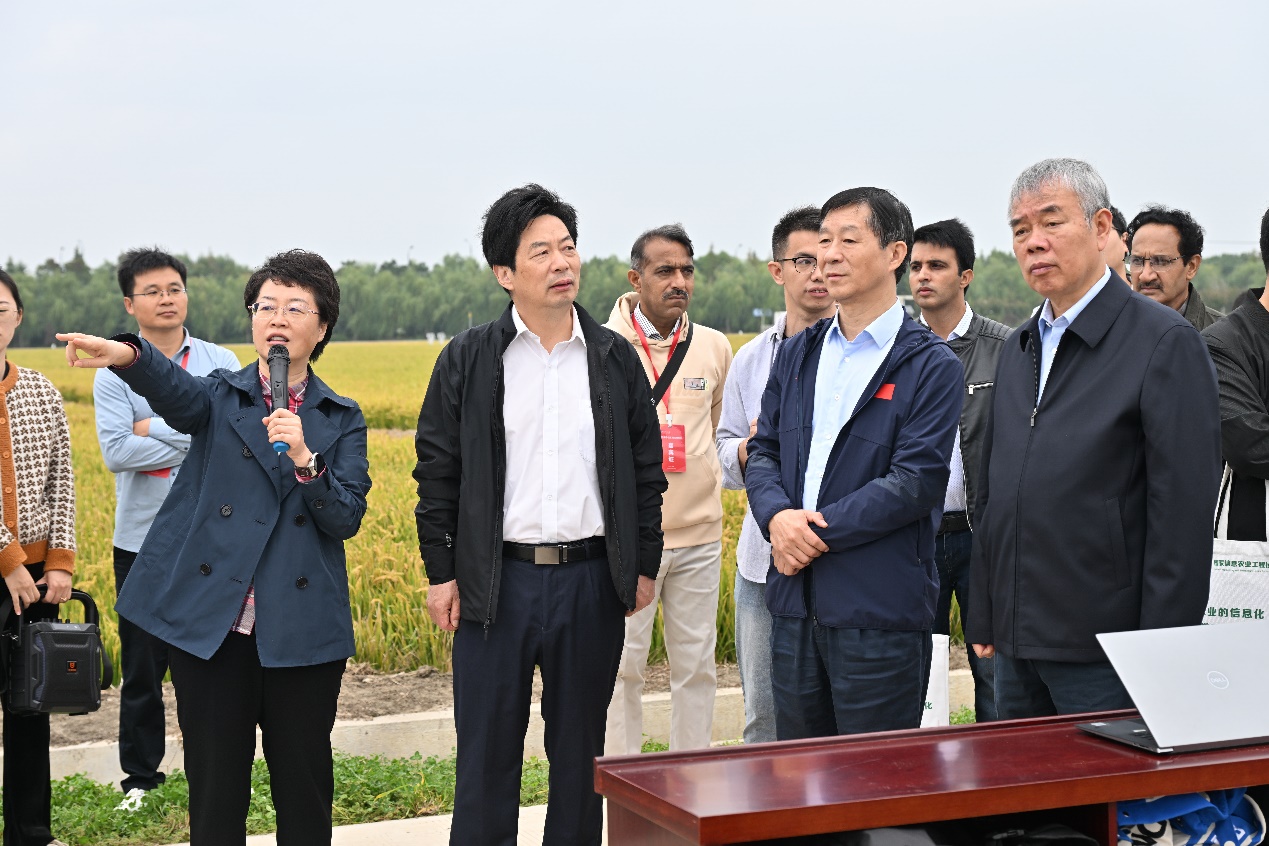 10月13日, 厂长资源 智慧稻作技术现场观摩会在盐城市七星现代化农场举行。全国政协教科卫体委员会副主任、民盟中央副主席、 厂长资源 智慧农业研究院名誉院长曹卫星,中国工程院院士张佳宝,江苏省农业农村厅二级巡视员巫建华,盐城市政协副主席唐伯平, 厂长资源 副校长丁艳锋、副校长朱艳,江苏省农业农村厅市场信息处处长马军,江苏省农技推广总站站长杨洪建,盐城市农业农村局总农艺师吕文婧,盐都区委副书记翟大伟、副区长孙高明以及学校宣传部、科学研究院、社会合作处、 厂长资源 、人工智能学院等有关部门和学院领导,7个智慧农业类国家“十四五”重点研发项目和国家农业科技重大项目代表,巴基斯坦费萨拉巴德农业大学、全国农业展览馆、中国农业科学院、农业农村部南京农业机械化研究所,北京市农林科学院、江西省农业科学院、河南省农业科学院、江苏省农业科学院、苏垦农发、东北农业大学、扬州大学、苏州农业职业技术学院以及全省各市县农技推广部门专家和现代农业企业负责人等120余名代表参会。会议由 厂长资源 智慧农业创新团队田永超教授主持。