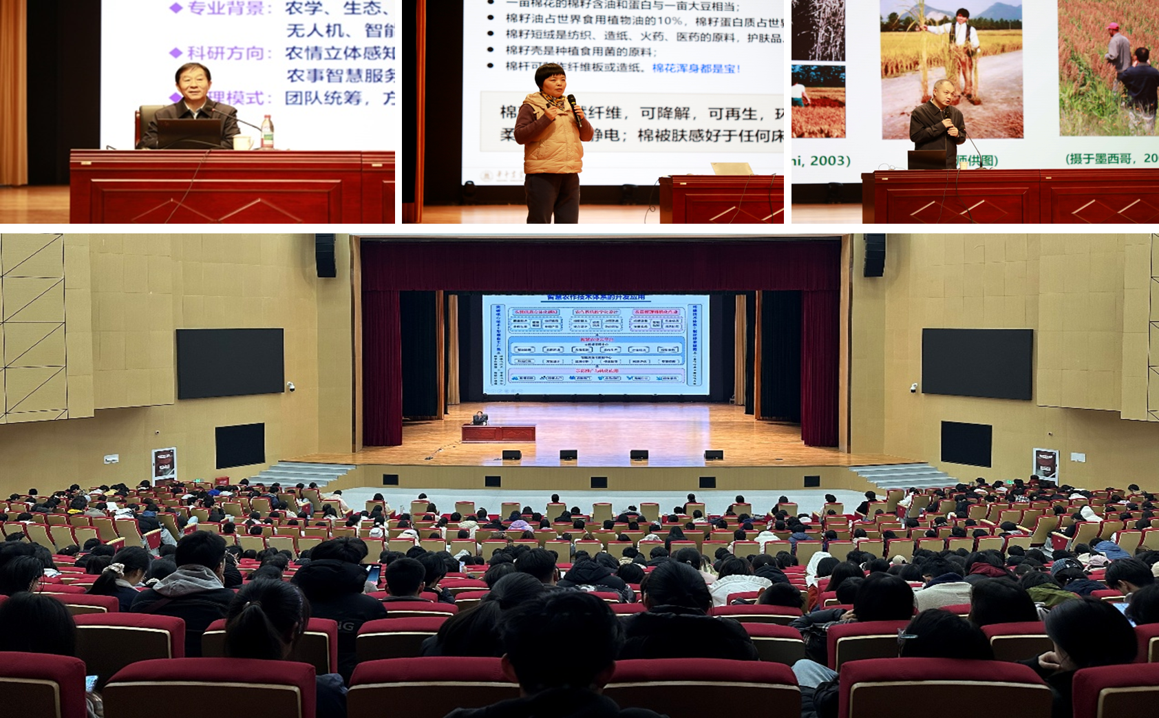 一、名家讲坛:聆听前沿,明晰方向。1月16日至18日,曹卫星、涂礼莉、倪中福三位知名教授先后为700余名本科生带来高水平专题讲座。他们分别围绕智慧农作技术、棉花生物技术、作物学传承与创新等主题,以渊博学识与生动案例,绘制出农业科技发展的未来图景。讲座不仅拓宽了学生的学术视野,更在潜移默化中树立了学术标杆,引导其将个人发展融入国家农业科技自立自强的大局。