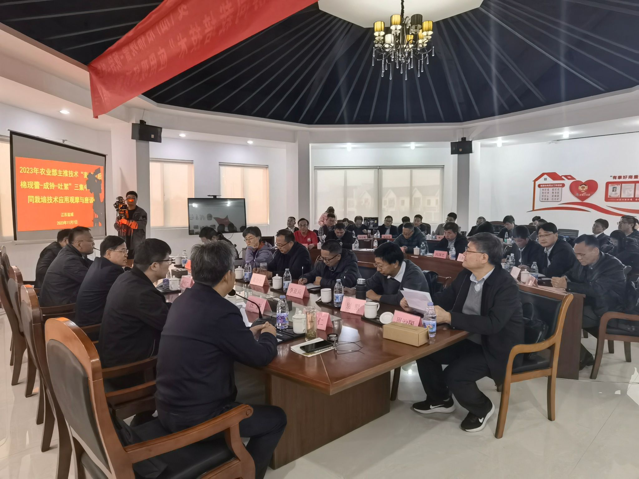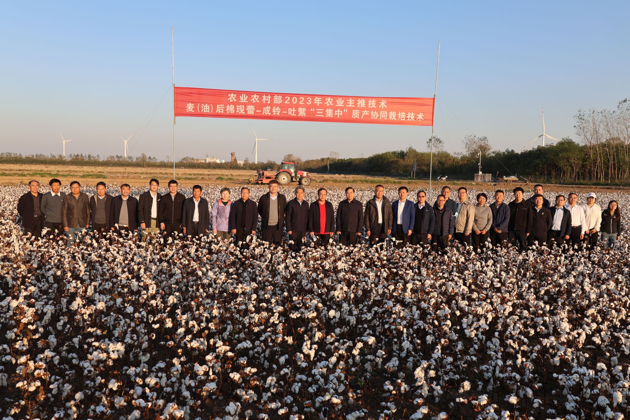 11月7-8日,农业农村部2023年农业主推技术“麦(油)后棉现蕾-成铃-吐絮”三集中“质产协同栽培技术”应用现场测产观摩与座谈会在江苏召开。国家棉花产业体系、农业农村部农技推广中心以及项目组领导专家先后观摩了兴化市安丰镇小麦后棉花和大丰区稻麦原种场盐碱地大麦与油菜后棉花技术应用现场,专家组对 厂长资源 经济作物生理生态与生产管理团队麦(油)后“三集中”质产协同栽培技术应用成果进行验收,在前茬小麦、油菜分别达到477.3 kg/亩、253.7 kg/亩的示范地进行现场估产,八五折籽棉产量分别达到357.9 kg/亩、343.4 kg/亩。