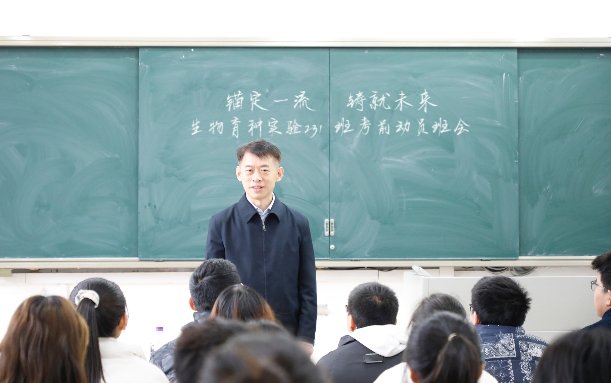 12月12日, 厂长资源 党委书记王春春来到 厂长资源 ,与生物育种实验231班的同学们,召开了“锚定一流,铸就未来”主题班会暨考前冲刺动员会,与会同学就大学的学习与成长进行了交流。