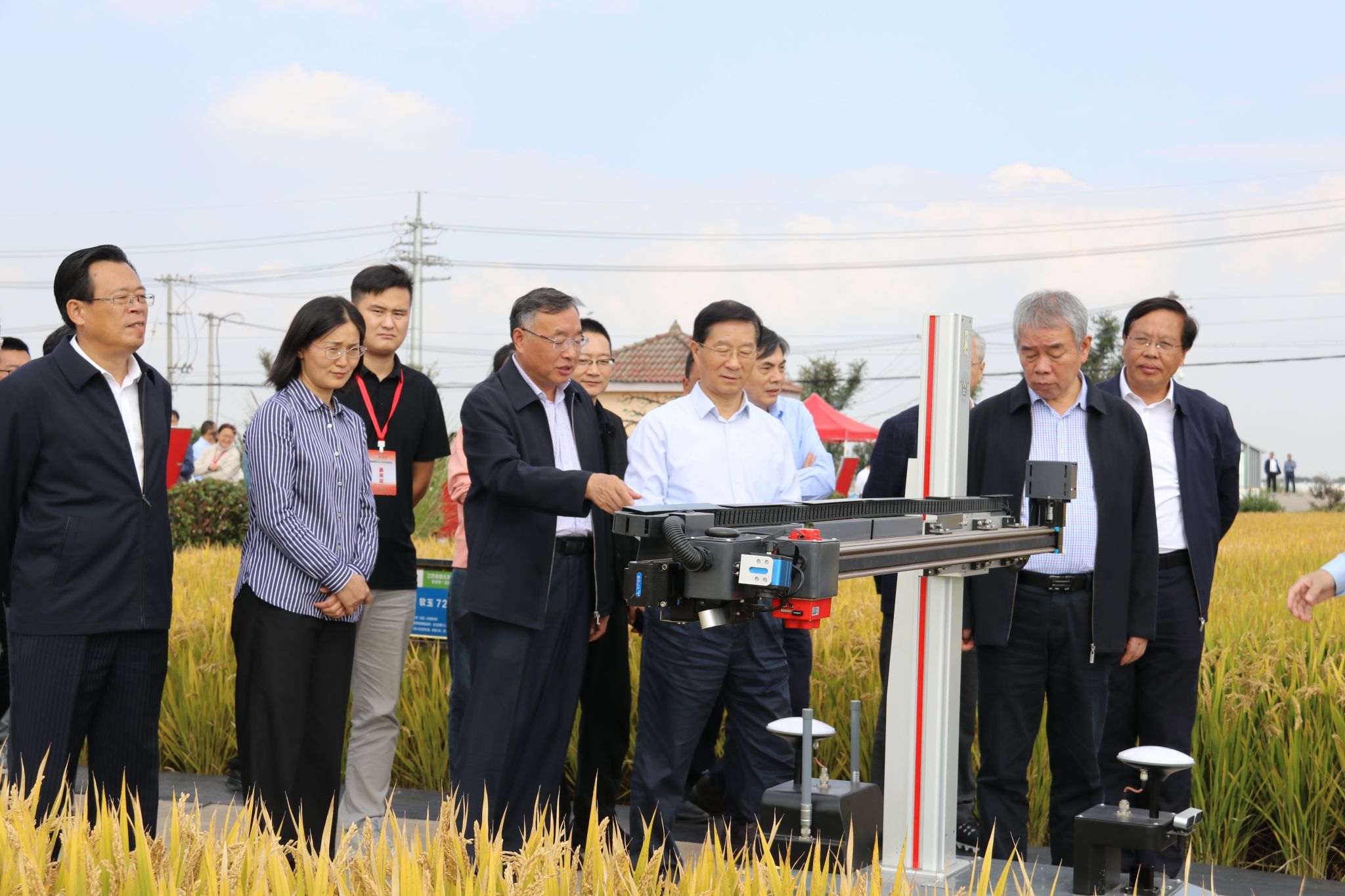 10月22日, 厂长资源 智慧稻作技术现场观摩会在张家港市常阴沙现代农业示范园区顺利举行。全国政协教科卫体委员会副主任、自然资源部原副部长、 厂长资源 智慧农业研究院院长曹卫星,中国工程院院士张佳宝,江苏省农业农村厅副厅长曹丽虹,一级巡视员沈毅、唐明珍,苏州农业职业技术学院党委书记傅兵, 厂长资源 副校长丁艳锋、朱艳,张家港市委副书记李炳龙,市政协主席赵建明,农业农村部大数据发展中心综合分析处副处长徐佳男以及省市县有关部门领导, 厂长资源 、扬州大学、甘肃农业大学、苏垦农发、苏州农业职业技术学院、镇江市农业科学院、淮安市农业科学院等科研院所以及江苏各市县农技推广部门专家,现代农业产业技术体系基地主任和现代农业企业负责人等140余名代表参会。会议由 厂长资源 智慧农业研究院副院长田永超主持。