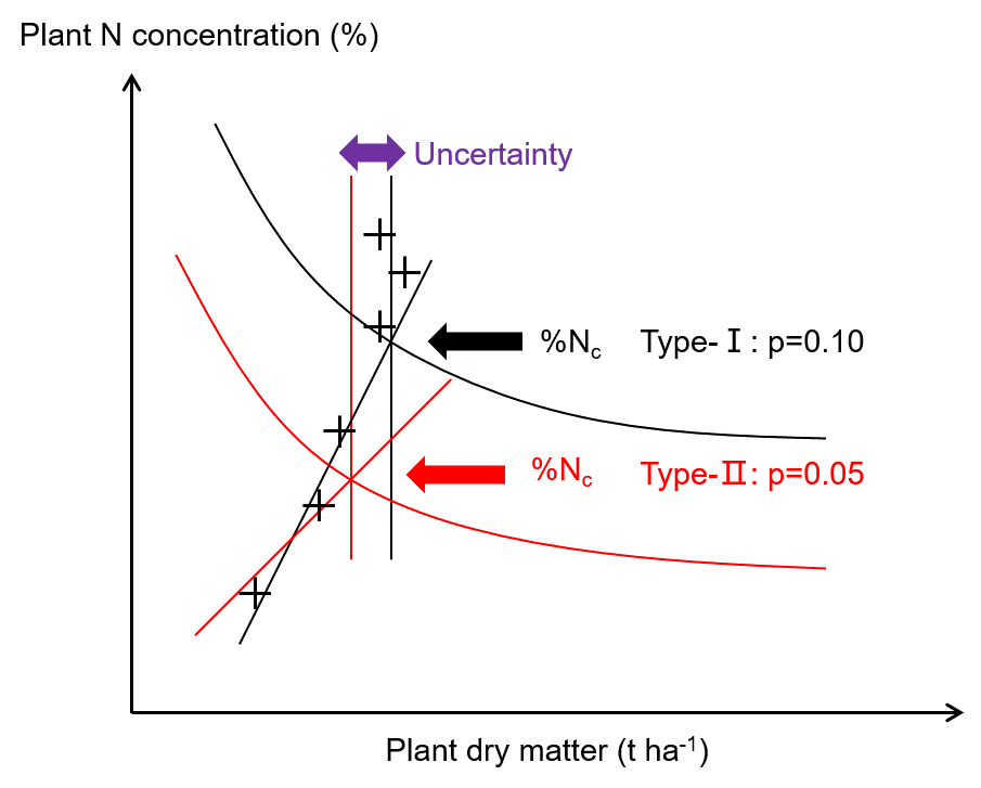 图 1 临界氮稀释曲线的构建(左图)及其不确定性(右图)