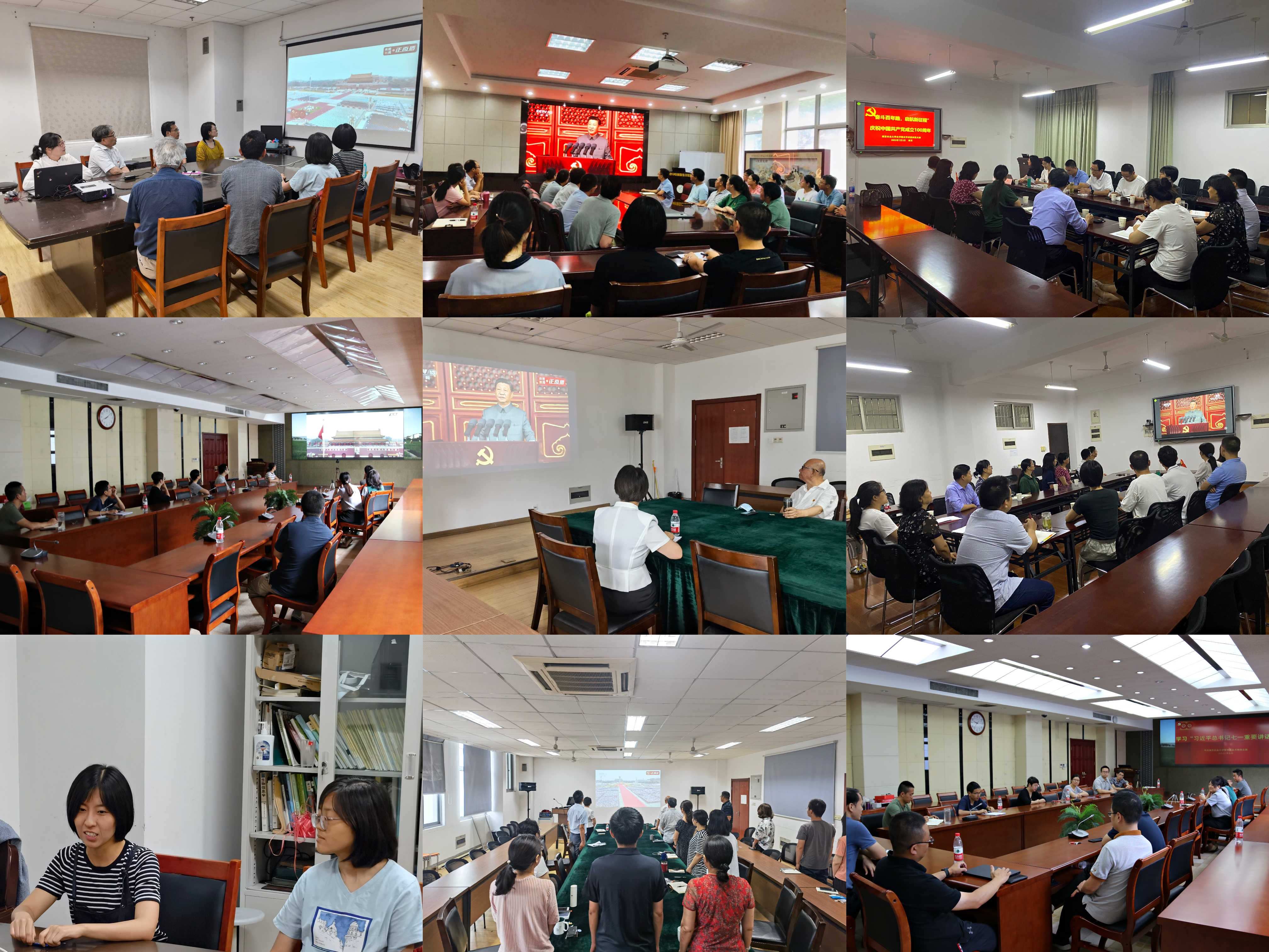 7月1日上午8时,庆祝中国共产党成立100周年大会在北京天安门广场隆重举行。中共中央总书记、国家主席、中央军委主席习近平同志发表重要讲话。学院领导、党委委员及院办教师党支部在学院会议室集中观看,学生党员代表200余人在教学楼C201集中观看,各教师党支部各自在分会场集中观看。