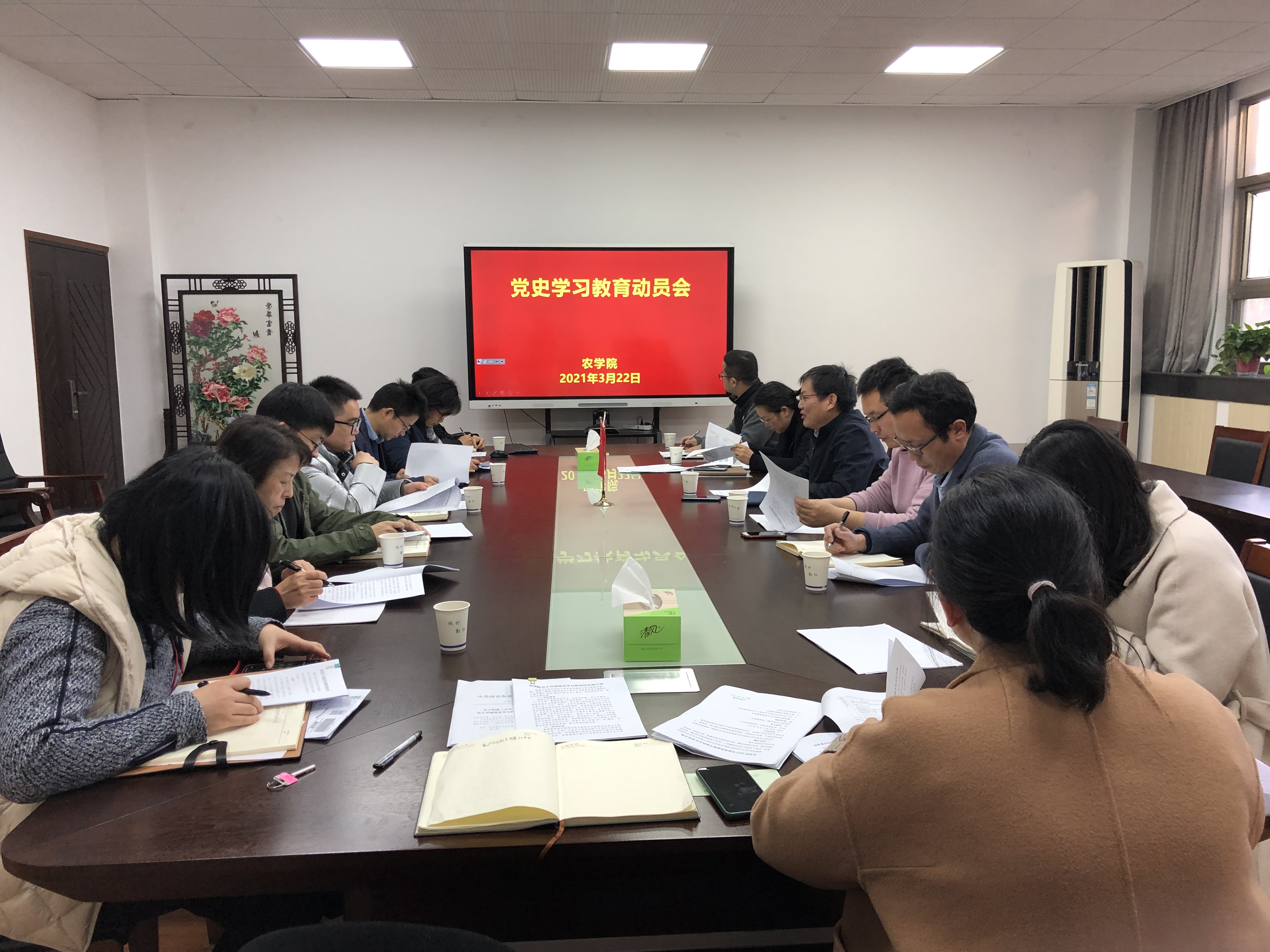 会上,党委书记戴廷波传达了中央、教育部党史学习教育动员大会会议精神,并对全院的党史学习教育工作进行动员安排,特别要求各党支部要主动思考、积极组织、认真学习,做好总结宣传,用党史学习的成效推动学院各项工作。同时,戴书记强调以下几点:一要提高政治站位,充分认识开展党史学习教育的重要意义。要深刻领会习近平总书记在党史学习教育动员大会上的重要讲话精神,把党史学习教育作为加强党的政治建设的重要抓手,切实增强“四个意识”、坚定“四个自信”、做到“两个维护”,守正创新抓住机遇,锐意进取开辟新局。二要强化组织领导,高标准高质量开展党史学习教育,把学习党史同总结经验、观照现实、推动学院工作结合起来,同解决实际问题结合起来,把学习成效转化为工作动力和成效,让师生检验党史学习教育的成果。三要落实好党史学习教育的各项具体要求。巩固主题教育成果,抓好专题学习;突出青年群体特点,加强政治引领;聚焦传承红色基因,组织好专题培训;要结合院工作实际,开展实践活动;强化党性锻炼,开好专题组织生活会。四要坚持以上率下,确保党史学习教育取得实效。争当学党史的标兵、讲党史的先生、懂党史的专家、用党史的榜样。五要选树一批学习典型,开展学习心得体会交流研讨,引导教育师生党员以初心砥砺前行、以使命鼓舞奋发斗志,以良好的学习成效和优异的工作成绩迎接建党一百周年。