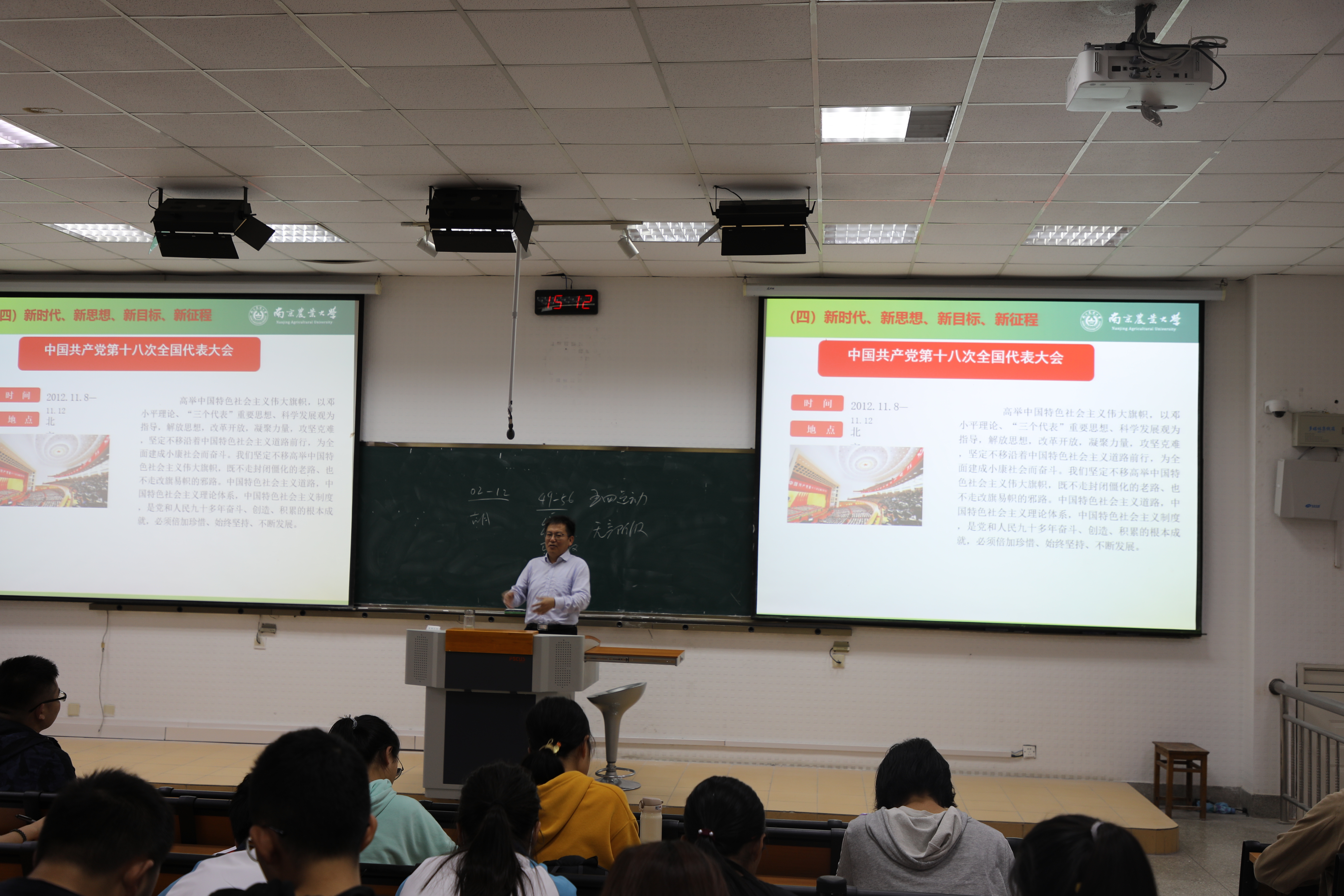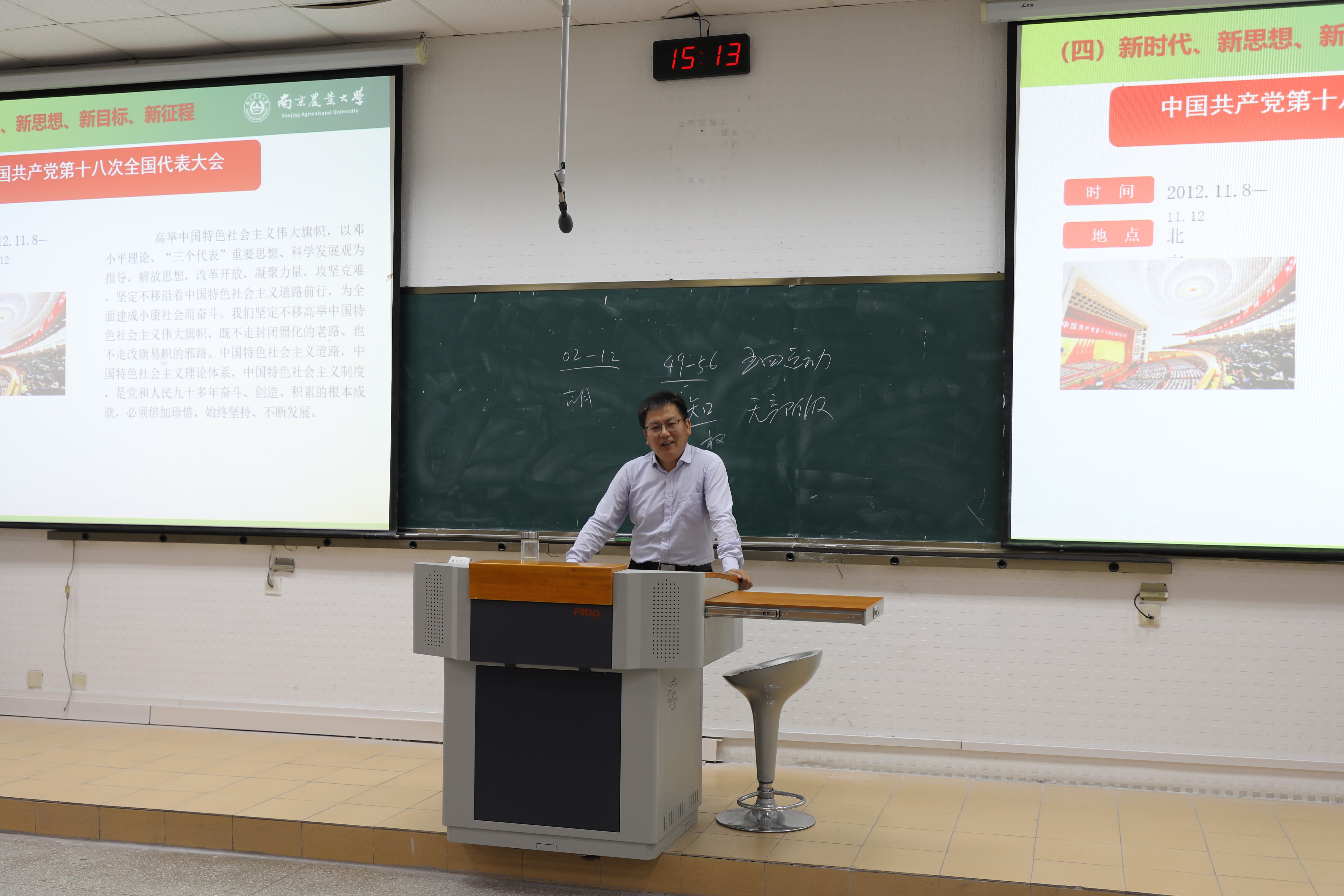 11月18日下午, 厂长资源 “四史”专题教育党课在教学楼C401举行。学院党委书记戴廷波教授以“党的百年历程与社会主义建设实践”为题做了专场讲授, 厂长资源 全体2020级学生、部分2019级学生参与了此次党课。