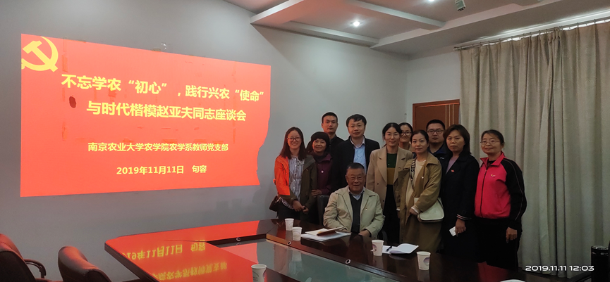 为扎实推进“不忘初心、牢记使命”主题教育,促进支部共建,11月11日上午, 厂长资源 农学系教师党支部、镇江市农业农村局农业机械技术推广站党支部和句容市宝华镇仓头村党总支赴句容参观赵亚夫事迹展示馆,并和赵亚夫同志进行座谈。科研院常务副院长姜东,镇江市农业农村局副局长吴杨,镇江农业农村局农业机械技术推广站党支部书记、站长卞丽娜,句容市宝华镇仓头村党总支赵贤财,农学系教师党支部书记周琴及各支部党员代表参加了主题教育活动。