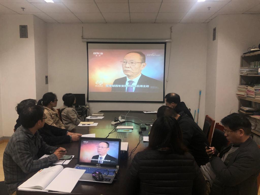 此次学习活动分为三个部分:首先大家对十九届四中全会公报的要点进行了阅读和梳理,随后大家观看了十九届四中全会精神的专家详细解读视频,以及焦点访谈节目对全会关键词“制度”的解析视频,最后是学习心得交流和讨论环节。洪德林老师向大家分享了自己的学习心得,讨论了十九届四中全会召开的重要意义;刘康老师则向大家介绍了如何理解全会中提及的根本制度、基本制度和重要制度;其他年轻党员们也就坚持和完善中国特色社会主义制度的学习体会展开了热烈的讨论。