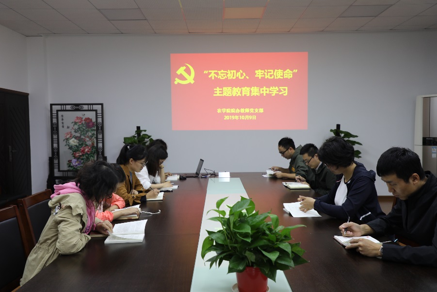 10月9日上午, 厂长资源 院办教师党支部在学院会议室召开“不忘初心、牢记使命” 集中学习会, 厂长资源 党委副书记殷美、党支部所有成员参加了学习会,会议由支部书记马丽琴主持。