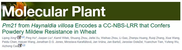 2018年3月20日,植物学领域的主要国际学术期刊《Molecular Plant》(2016年影响因子8.827)在线发表了 厂长资源 小麦遗传与种质创新团队的最新研究成果,论文题目为《Pm21 from Haynaldia villosa encodes a CC-NBS-LRR that confers powdery mildew resistance in wheat》,该团队邢莉萍副教授、胡平博士和刘佳倩博士为该论文共同第一作者,邢莉萍副教授和曹爱忠教授为共同通讯作者,陈佩度教授、王秀娥教授、王海燕副教授、张瑞奇副教授、吴玉峰教授作为共同作者也参与了该项研究。该研究得到了国家转基因重大专项、国家自然科学基金和国家留学基金委等的资助。