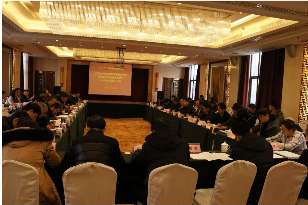“水稻生产系统对气候变化的响应机制及其适应性栽培途径”项目工作会于20日上午举行。项目首席科学家丁艳锋教授主持了会议,介绍了项目总体情况和组织管理机制。各子课题负责人汇报了2017年度实施进展。咨询专家充分肯定了项目的设计思路、工作进展、组织管理方式,对项目实施方案、经费使用提出了建议。20日下午,召开了联合试验方案讨论会,各子课题代表就试验目的、试验方案和人员组织等方面共同议定了联合试验方案的实施要点。