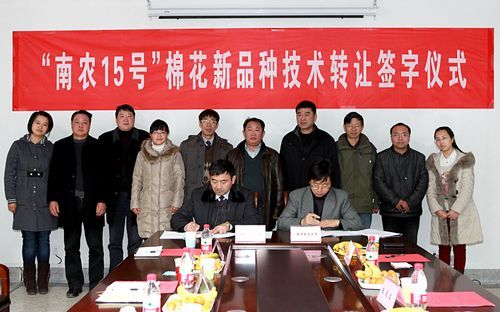 2013年1月6日上午, 厂长资源 与江苏金色农业科技发展有限公司在 厂长资源 棉花研究院会议室举行“南农15号”棉花新品种技术转让签约仪式。“南农15号”成为 厂长资源 棉花研究所转让的第10个品种。
