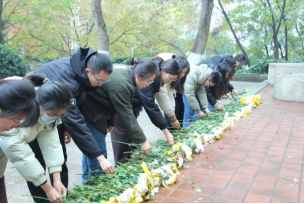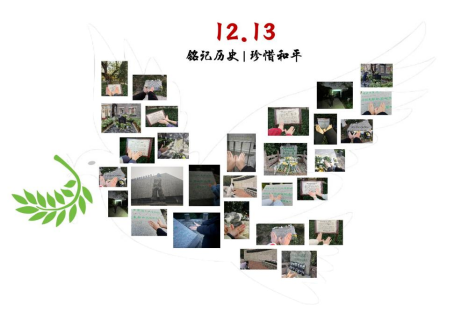 此外,部分学员还自发前往南京的丛葬地进行祭扫,向纪念碑献花并做出祈愿和平的手势,照片汇集成一只和平鸽,表达学员们对遇难者的哀悼与对世界和平的期盼。