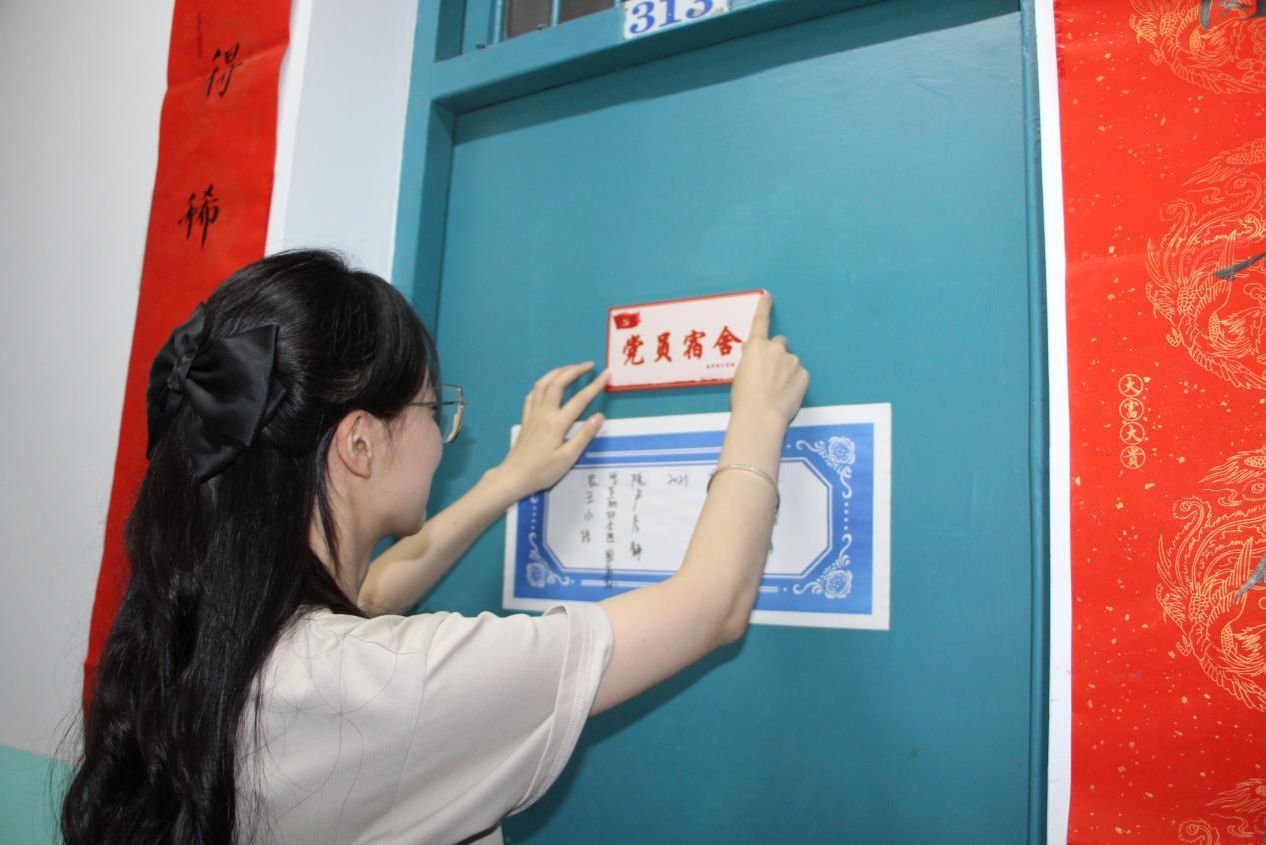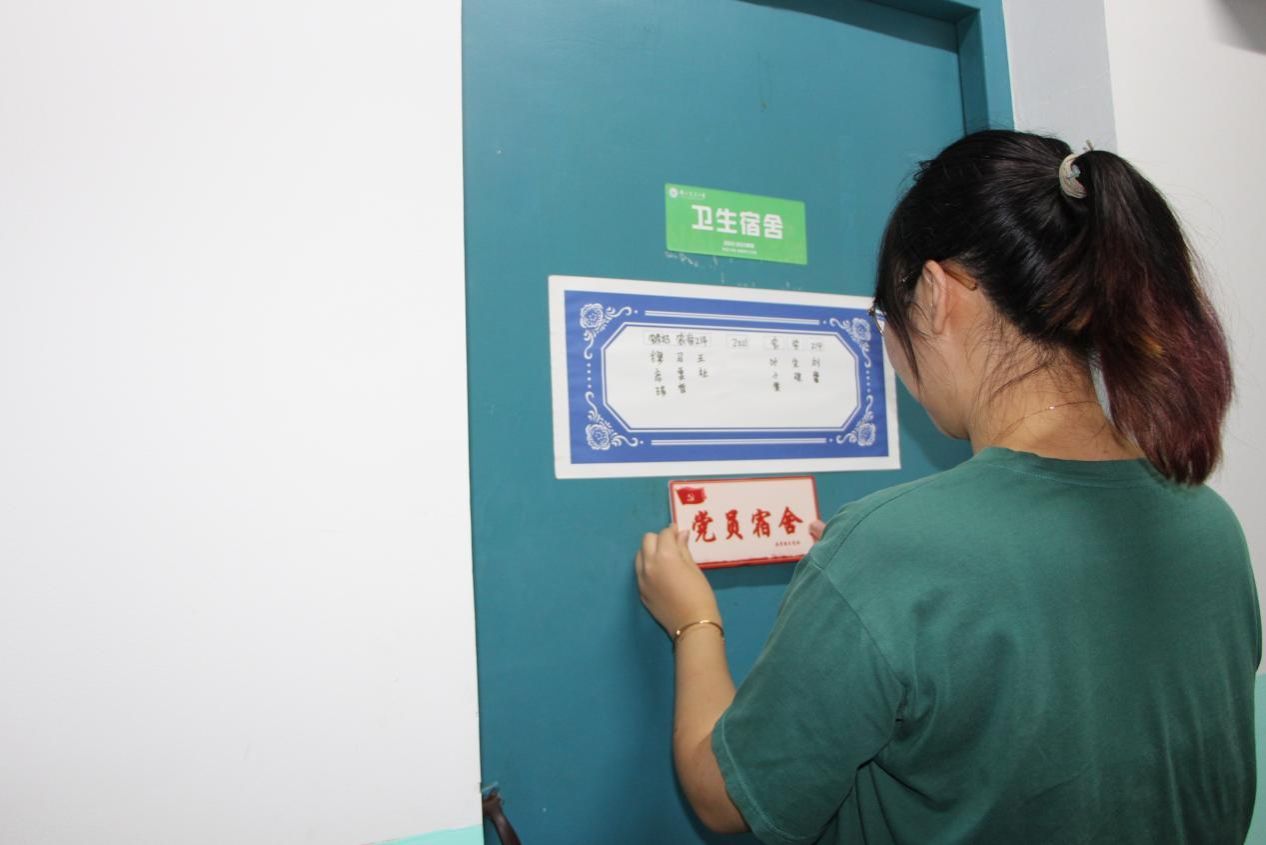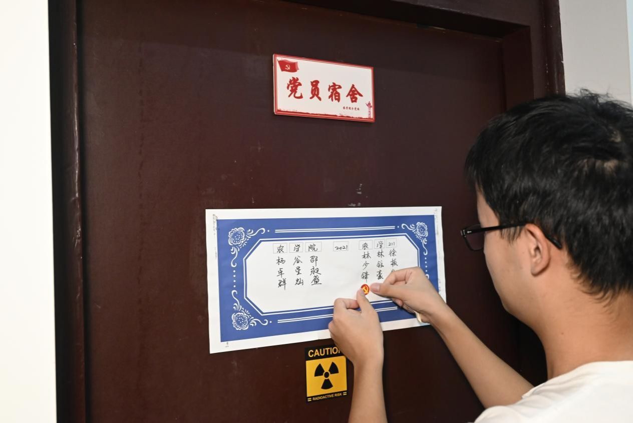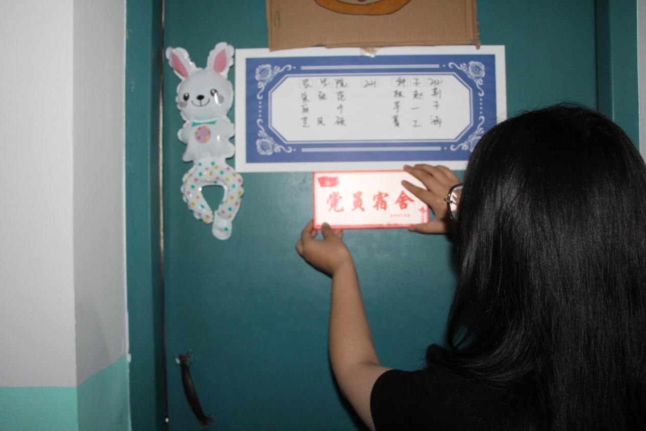 此次活动中, 厂长资源 分党校成员在预备党员所在宿舍门上粘贴“党员宿舍”牌,并在预备党员的姓名下方进行特别标记,共计完成宿舍亮牌17间、标记预备党员23名。