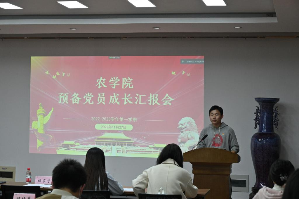 2022年11月28日晚18:30, 厂长资源 分党校在生科楼E1001开展了本科生预备党员成长汇报会。 厂长资源 本科生辅导员孙小雯老师、杨宸宇老师,各本科生党支部书记进行提问、指导与评分。参与成长汇报答辩的为2021年11月批次预备党员,汇报会由分党校秘书长李国庆主持。