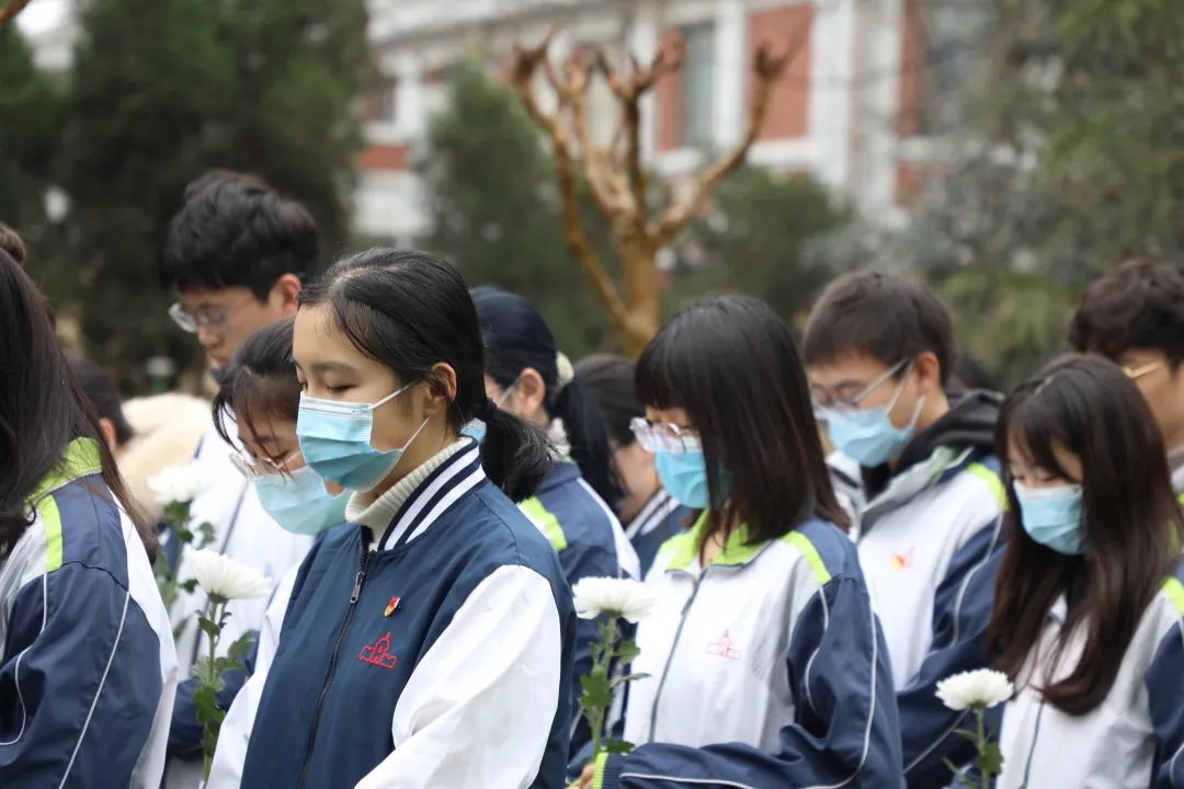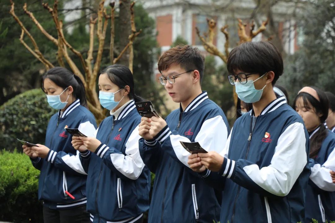 立一句强国誓言。党员代表程宇馨同学在纪念碑前抒发哀思,立下强国誓言。在不容篡改的历史面前,我们要用不屈不挠的民族精神捍卫历史的真实;我们要始终保持清醒的头脑,团结起来向前进,让我们的祖国更加强大。坚守初心使命,践行“请党放心,强国有我”的誓言,以中国复兴之盛景告慰逝者。
