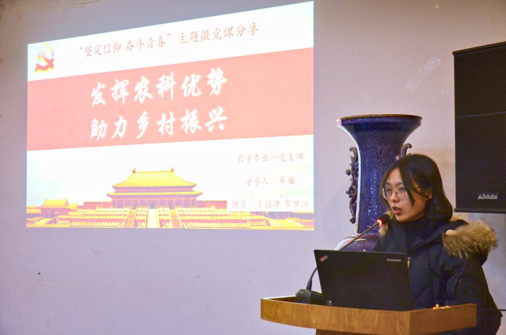 会前, 厂长资源 分党校展示了本院研究生党支部制作的微党课材料,给予大家参考与学习。随后,农学专业一党支部、农学专业二党支部、植物实验专业党支部、种子专业党支部等支部的代表以农科学子的身份,从“用全球眼光看中国发展”、“新中国成立以来成就”、“习近平总书记给全国涉农高校回信精神”、“农科学子如何助力乡村振兴”、“青年学子如何做到‘自讨苦吃’”等方面出发,从不同的视角展开分享,展示了新中国成立70年来的光辉历程和伟大成就,展现农科学子的思考和青年力量。