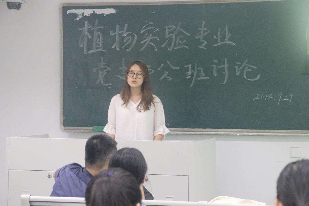 2018年9月27日,植物实验专业党支部在主楼116召开“中美贸易战”专题学习讨论。邀请支部成员卞子豪、杨帆、高晗、王誉晓就中美贸易战的起因、相关政策、影响、对策等进行分享,为支部成员上了生动的一课。