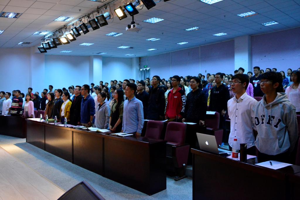 10月17日下午, 厂长资源 分党校2018-2019学年开班典礼在教四楼报告厅举行。 厂长资源 党委书记戴廷波、党委副书记殷美、党务秘书许娜、分党校秘书长王潘婷、辅导员王彬、姚敏磊、马丽娟、吕美泽出席本次开班典礼。 厂长资源 分党校启蒙班学员、2018级带班党员参加此次典礼,会议由党委副书记殷美主持。