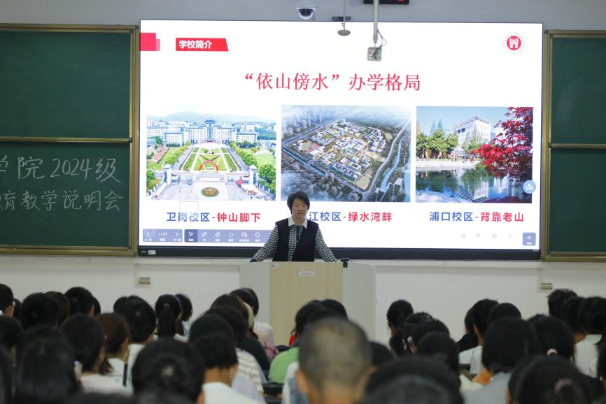 党委副书记殷美以三个校区的特色与优势为切入点,带领新生们领略了南农的校园风光和学术氛围。殷书记分四个学科系进行了简单介绍,并强调了踏实学习、报效祖国的重要性。在展示优秀学生个体和集体风采的同时,殷书记还分享了研究生创新能力培养的显著成果以及本科生毕业去向的多元化选择,进一步激发了新生们的学习动力和职业规划意识。