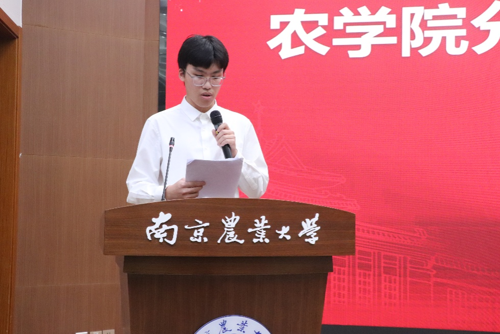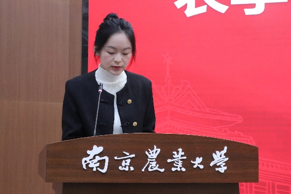 启蒙班研究生新学员代表曹凤姣和本科生新学员代表金燹翀分别发言,结合自身成长经历,表达了向党组织靠拢的坚定意愿,并从“坚守初心,筑牢思想根基”“锤炼党性,深耕实践沃土”“争做先锋,勇担时代使命”三个方面代表全体新学员郑重表态,表示将把个人理想融入农业强国建设,以实际行动争取早日加入党组织。