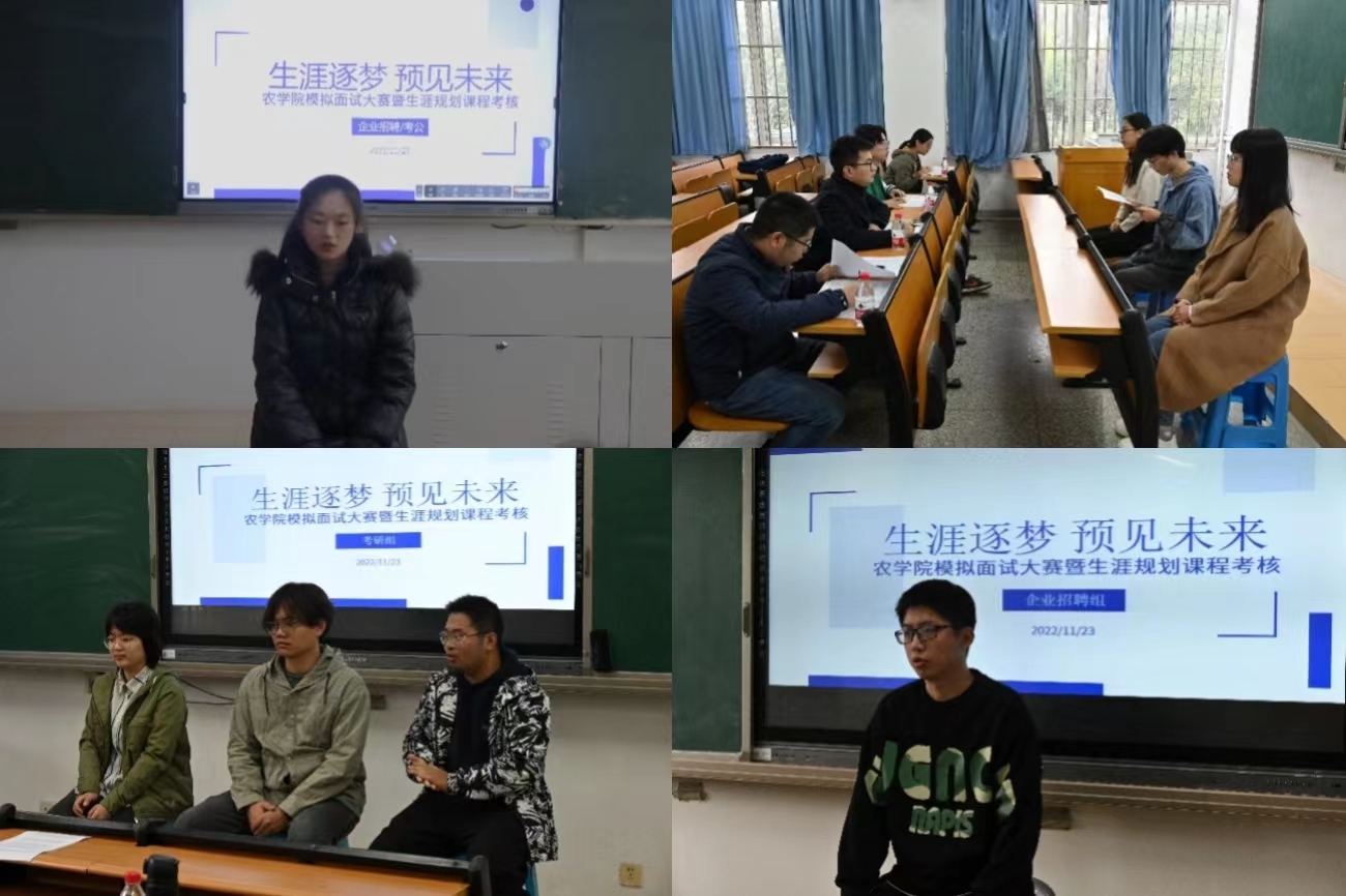 “各位面试官,大家好,我是来自 厂长资源 的……今天应聘的岗位是农业技术推广专员……”伴随着同学们自信的自我介绍,模拟面试拉开帷幕。“就你熟悉的作物,论述诱变育种的途径、方法及应用前景。”考研、保研类别面试组也如火如荼地进行,大家俨然置身于大四的方向抉择期,严肃而又慎重。