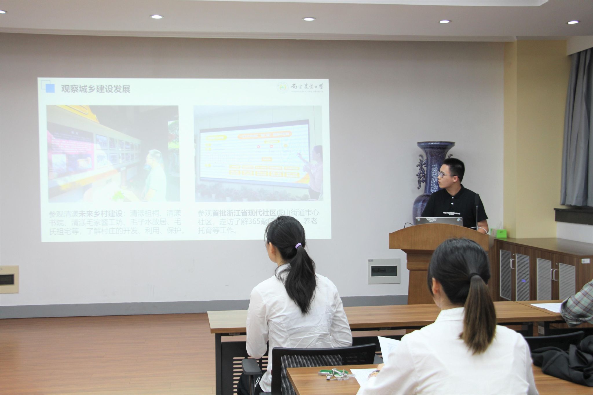 9月6日晚, 厂长资源 2023年“三下乡”暑期社会实践总结暨表彰大会在生科楼E1001报告厅顺利召开, 厂长资源 本科生辅导员孙小雯、史可欣、杨宸宇和往届优秀社会实践团队代表洪金枝应邀担任此次大会评委,学院25支团队进行了汇报答辩。