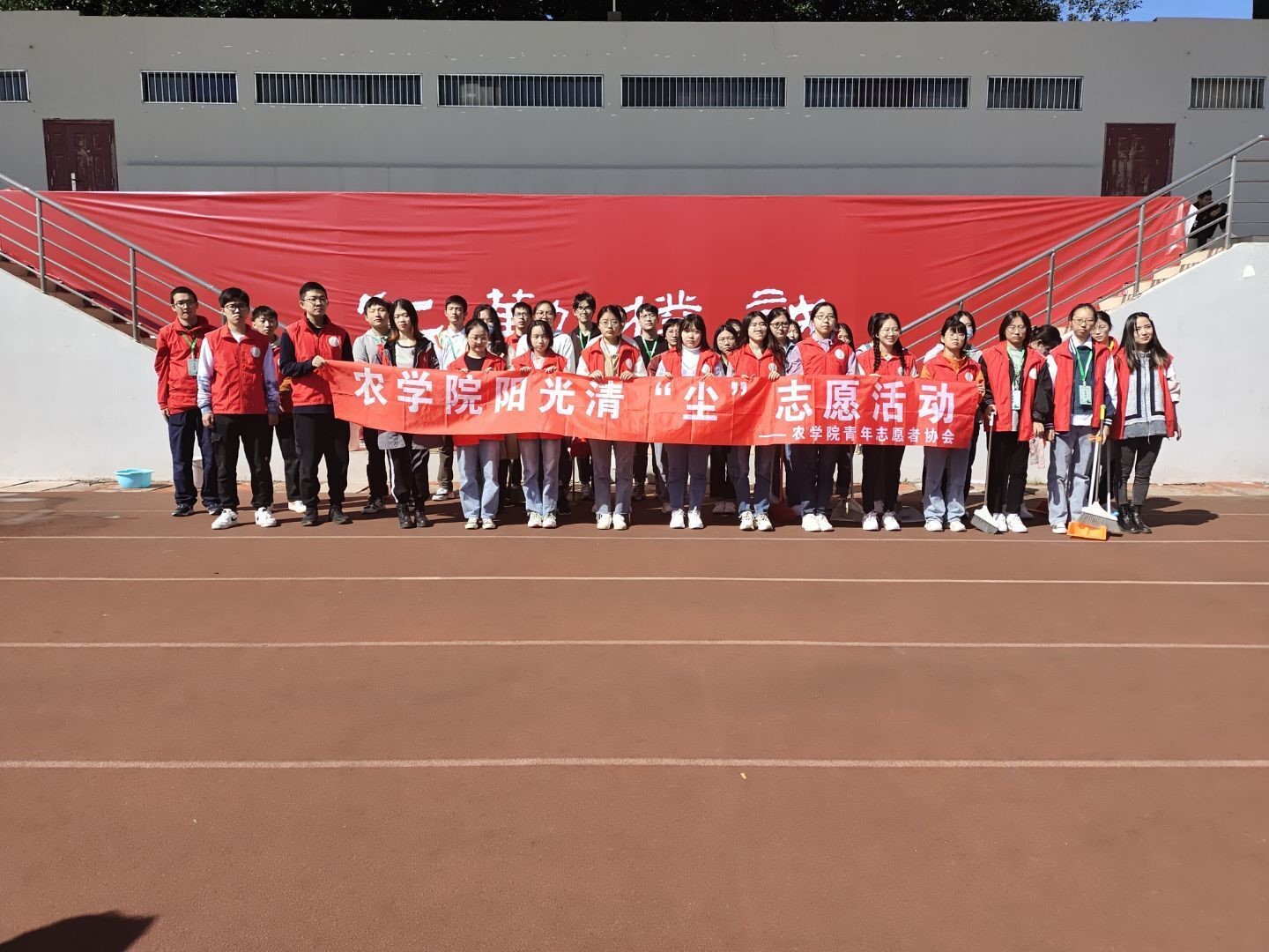 为进一步做好“建设美丽校园,创建优雅环境”工作,提升校园环境卫生质量,2021年 10月17日, 厂长资源 青年志愿者大队招募了43名志愿者,在学校操场的主席台两侧及玉兰路一侧的观众席处,开展了“阳光清尘”志愿服务活动。