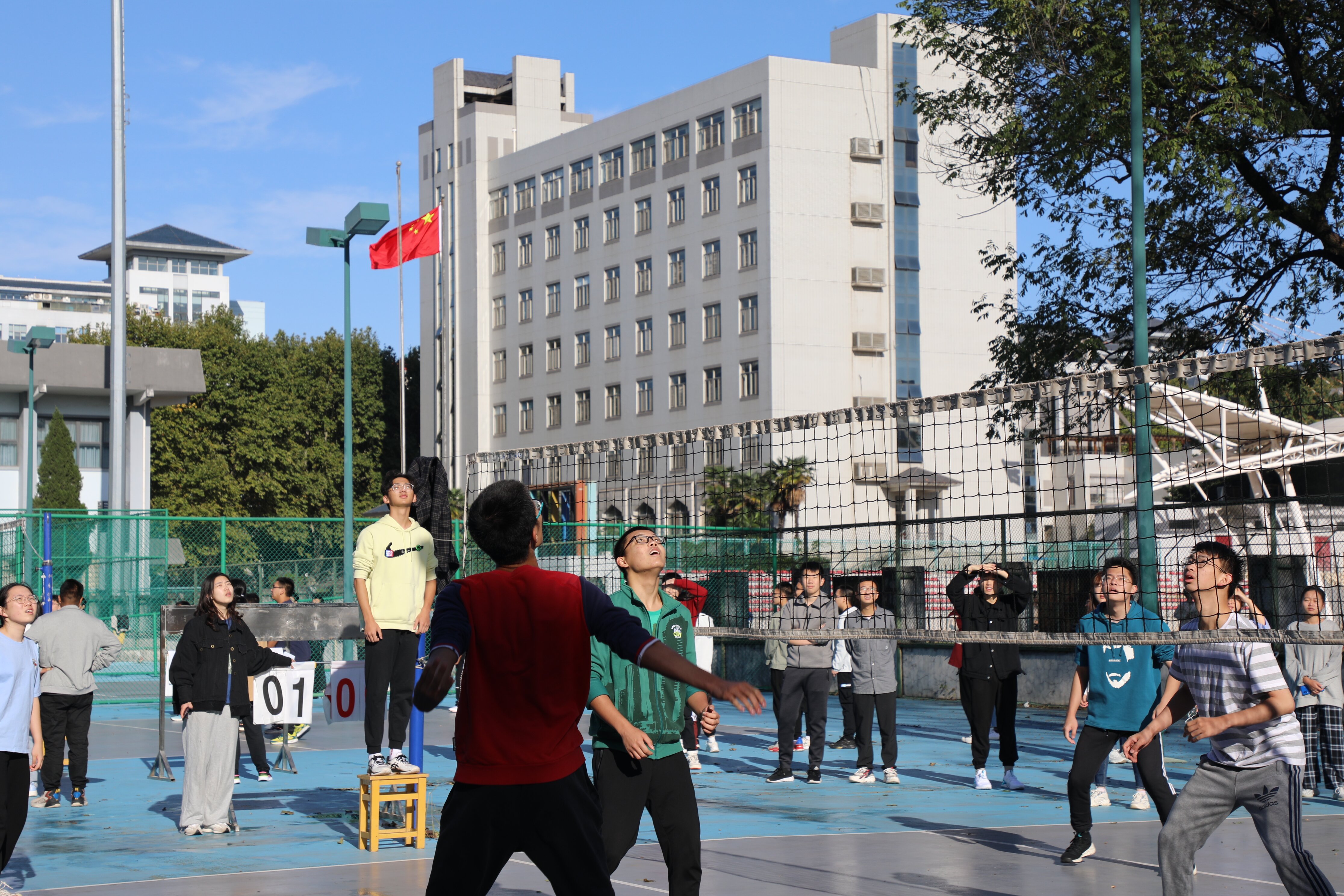 本次比赛以班级为单位,分初赛、半决赛和决赛,采取三局两胜制对抗。早上七点半,各班级运动员们来到排球场,在各班负责人的带领下进行热身活动。八点钟,一声令下,东西两场同时开始比拼,各队伍在观众们热情高涨的呐喊声中迅速进入比赛状态。