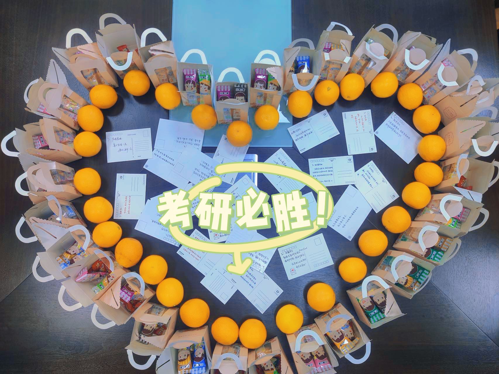 为准备这近百份“考研暖心包”, 厂长资源 本科生辅导员孙小雯老师和高强老师携学生们早早便开始准备着。暖心包装有“旺仔”奶糖、棒棒糖和脐橙,祝愿考研学子们“好运兴旺,永远最棒”,“脐开得胜,橙功上岸”,另外还有辅导员老师们及学弟学妹们亲手准备得惊喜——精美贺卡:“长风破浪会有时,直挂云帆济沧海”,“星光不问赶路人,时光不负有心人”,“研途漫漫, 厂长资源 与你共进退!”……