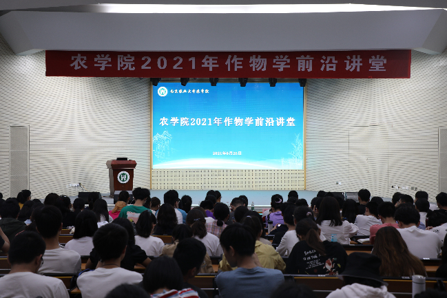 5月26日晚, 厂长资源 2021年作物学前沿讲堂第二期在大学生活动中心顺利举行。农学系水稻栽培课题组、智慧农业系信息农业课题组、遗传育种系水稻育种课题组、遗传育种系应用植物基因课题组、遗传育种系大豆育种课题组的5位课题组负责人或骨干教师受邀到场介绍了自己所在学科的前沿知识及课题组研究进展, 厂长资源 大一到大三共计300余名同学参与此次前沿讲堂,学院党委副书记殷美主持。