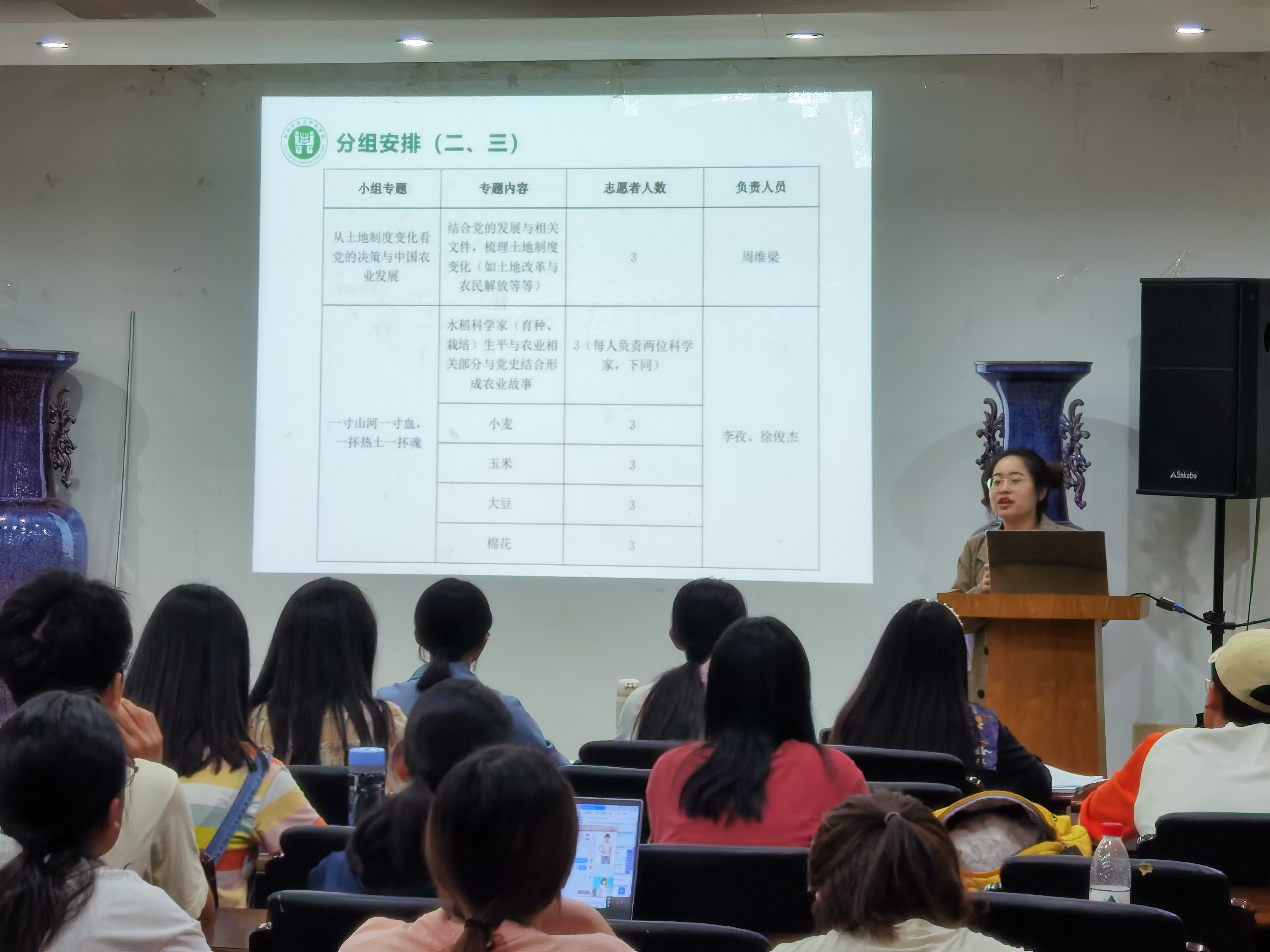 本次培训会的内容主要分为分组安排、案例介绍、答疑三部分。叶彤结合相关案例,介绍调研的具体内容以及本次活动的意义。此次培训会旨在引导同学们结合专业知识对党史进行挖掘,探寻党史在农业史中的缩影,并把学党史与农业史、乡村振兴相结合,指导同学们积极开展此次 厂长资源 “党史中的农业史”调研。期间,叶彤为志愿者讲解此次调研实践活动的五个大主题:“党史与农业史中改变你我命运的时刻”、“从土地制度变化看党的决策与中国国农业的发展”、“一寸山河一寸血,一抔热土一抔魂”、“小人物的大影响:乡村振兴优秀模范”、“党旗飘飘,不再浑身泥泞挥着镰刀”。在青年志愿服务部成员的引导下,志愿者依各自兴趣结成13个小组。