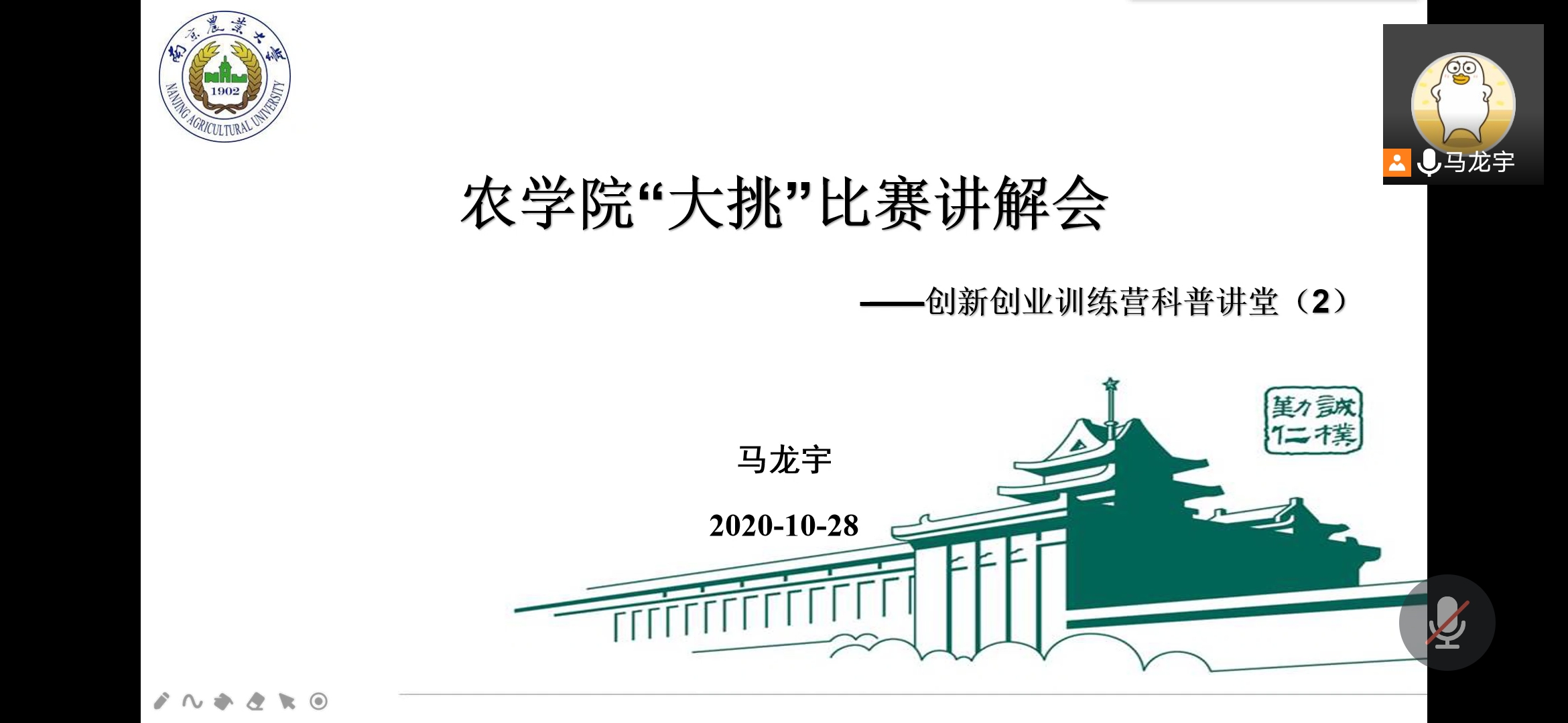 10月24日晚, 厂长资源 “大挑”比赛讲解会暨创新创业训练营科普讲堂第二期在腾讯会议APP线上举行。数十名对创业创业类感兴趣的同学参与了本次讲解会,本次讲解会由科学技术协会部长马龙宇主持。
