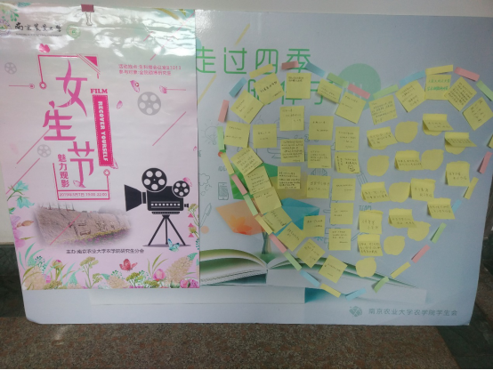 3月7日晚7时, 厂长资源 “心语农苑,壹信壹影”女生节主题活动在生科楼B1013举行。本次女生节活动以写下一个心愿、观看一部电影、致未来的一封信为主线,得到了学院女同学的青睐。活动开始前,参与活动的女生利用便利贴写下自己的一个心愿,贴在展板上展示。观看一部电影环节,选择了同学们深受喜爱的影片并在结束时同学们分享了观后感进行交流。活动最后,同学们为毕业时的自己写下一封信并封存由研会保管,毕业时将会把信件寄于本人。此次三七女生节活动,丰富了研究生的业余生活,活跃了 厂长资源 的文化气氛,促进了同学之间的交流。