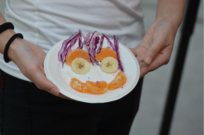 活动分为知识问答和参与者自己动手制作水果沙拉两个环节。知识问答又包括三部分:抽题问答,辨别粮食以及搭配食物。一系列内容多样的问答题,对同学们进行了粮食知识的科普。游戏环节环环相扣,吸引了一批又一批的同学,尤其在制作沙拉环节参与者都表现出了极大的兴趣。大家一起参与制作水果沙拉,并享受这个制作沙拉过程。