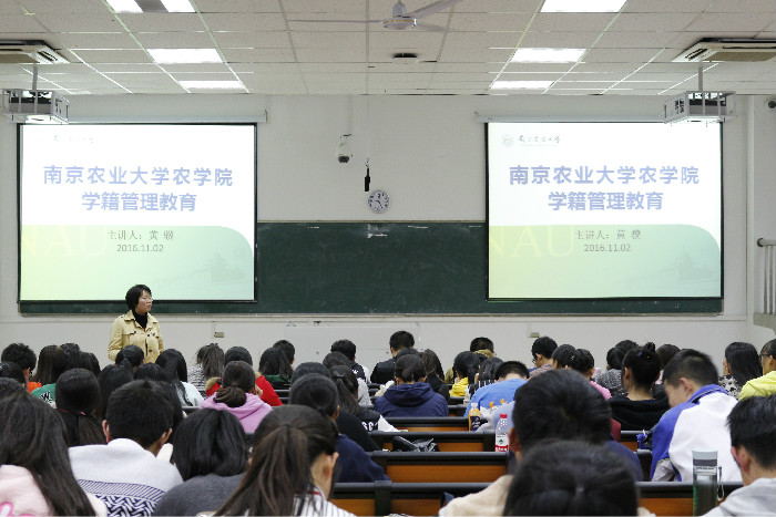 11月2日下午, 厂长资源 2016级本科生学籍管理大会在教学楼c201举行。副院长黄骥教授主讲,党委副书记殷美,教务秘书郝佩佩出席此次大会,会议由姚敏磊主持。