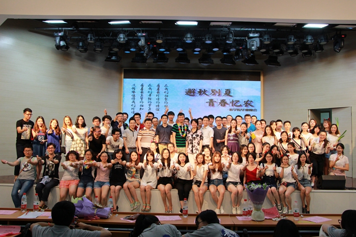晚会的主题是“邂秋别夏,青春忆农”。在晚会正式开始之前,播放了 厂长资源 自己录制的毕业纪念视频,通过采访大四毕业生的形式展现了她们的青春故事,诉说了她们的离别情感。晚会分为三个篇章。第一篇章为“白驹过隙”,各个毕业班以其出奇制胜的节目形式博得了台下老师和同学们的一致好评,戏剧、模拟电台、跳舞、歌唱,各班的表演都成功的带动了现场的气氛,台下掌声和欢呼声不断。第二篇章为“此心耿耿”,原话剧团的小品《爷仨的幸福》、2015届学生会的合唱《不完美小孩》,以及大二等同学的乐器演奏《送别》等体现了 厂长资源 师生之间以及对学院的深厚感情。在第三篇章的“青春如歌”中,每班都展现了自己制作的毕业视频,一首首的班级合唱将晚会推向了高潮。台下的同学自发上台与毕业生拥抱,殷美、王彬等学院老师也接连上台演唱,把晚会变成了真正意义上的师生联欢。晚会结束后,大家一起合影留念,把最美的笑容定格在了晚会舞台上。
