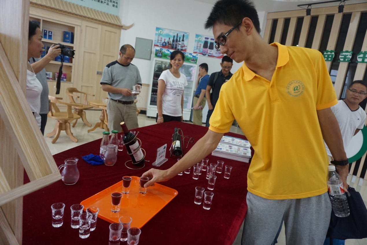 在老师们的带领下,成员们首先参观了蓝莓科普馆,观赏了蓝莓基地的介绍视频,品尝了蓝莓原汁并观摩了蓝莓相关产品。