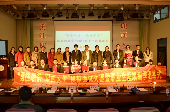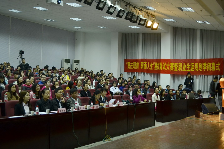 11月19日下午,由校学生工作处主办、 厂长资源 承办的“勇往‘职’前,‘职’面人生”模拟面试大赛暨首届“职业生涯规划季”颁奖闭幕式在教四楼报告厅拉开帷幕。大赛邀请了江苏中江种业股份有限公司副总经理查军民、智联招聘(南京分公司)大客户总监梁倩艳、南通正大集团人力资源总监李昕、苏宁云商校园招聘经理林勃、北京东方园林股份有限公司招聘经理李沙沙等企业高管担任本次大赛的评委。学生工作处副处长刘亮、副处长吴彦宁莅临现场,校就业指导中心、部分学院分管领导和辅导员老师以及来自全校各学院的200多名同学观摩了比赛和颁奖闭幕式。