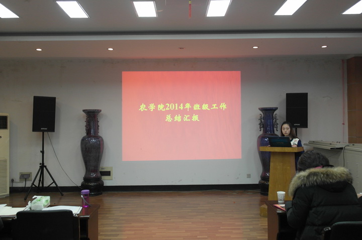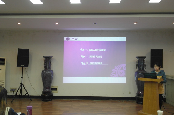12月15日下午, 厂长资源 团委组织部在生科楼E1001组织开展了 厂长资源 2014年班级建设工作汇报交流会。会议由团委副书记马心怡主持,邀请到辅导员殷美老师和王彬老师,以及分党校秘书长顾周琳,学生会主席袁昊,学生会副主席史轩宇、惠帅担任考核评委。