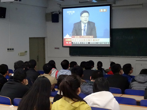 2015年3月3日至3月15日,全国人大和全国政协会议在北京隆重举行。为了让 厂长资源 研究生党员及时全面地领会刚刚闭幕的两会所传达的精神,3月21日晚7:30在教学楼C103, 厂长资源 研究生党支部组织研究生党员和入党积极分子观摩两会热点视频:《关于环保部部长陈吉宁谈全面加强环境保护》。