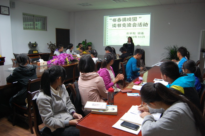 10月18日,由 厂长资源 团委主办、 厂长资源 原野文学社承办的“书香满校园”读书交流会活动在生科楼B1013举行。 厂长资源 团委原野文学社社员和 厂长资源 大一大二各班级代表以及对此活动感兴趣的同学参与了活动,目的是丰富大一同学的课外生活,指导同学选好书、读好书,养成爱读书、会读书的好习惯。