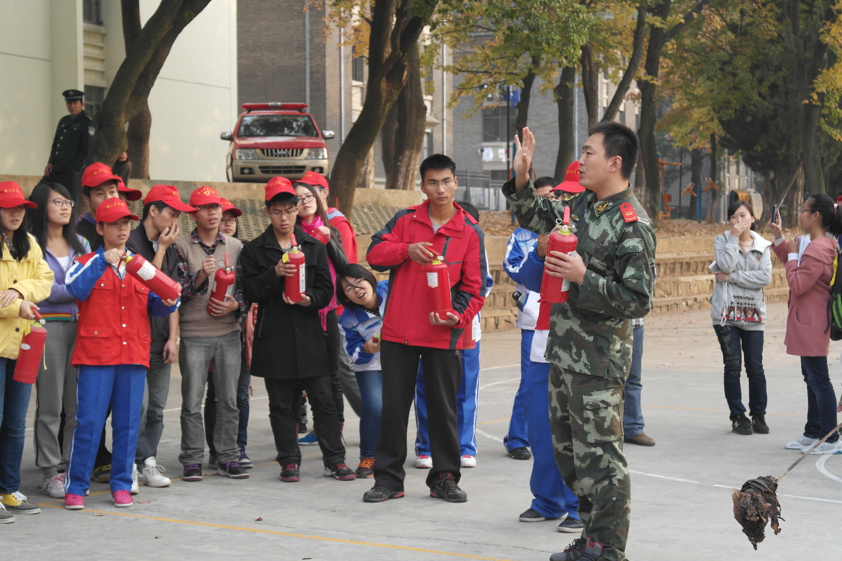 活动结束后,消防队员对此次演习进行了讲解与点评,并指导在场学生使用灭火器。校医务人员与 厂长资源 红十字会成员也对同学们讲解了急救知识和伤病紧急处理方法。随后同消防官兵的联谊篮球赛同样精彩,气氛热烈,同学们的欢呼声此起彼伏,为此次消防演习活动划下了完美句号。