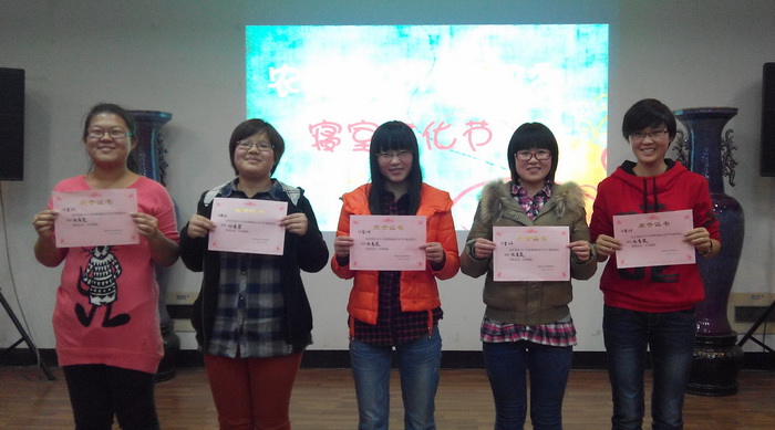此期寝室文化节的室内比拼环节历时3个小时。期间,会场内欢声笑语不断,使得大家在紧张的学习氛围中得到放松。寝室文化节不仅增进了舍友间的情谊,也增加了参赛寝室间的交流与了解,希望在以后的日子里,整个楼层的各个寝室都多加交流,营造和谐大家庭。活动的最后,进行了颁奖环节。11舍115宿舍等寝室获得了此次寝室文化节的奖项,获得了丰厚的奖品。