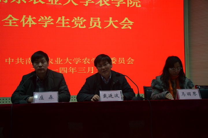 3月5日下午6点半, 厂长资源 于校大学生活动中心举行中共 厂长资源 学生党员大会,大会由 厂长资源 党委书记戴廷波主持。出席大会的还有 厂长资源 党委副书记庄森、党务秘书马丽琴;辅导员郭晓鹏、殷美及全体学生党员。