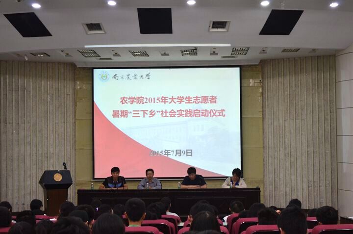 7月9日上午, 厂长资源 2015年大学生志愿者暑期“三下乡”社会实践启动仪式在图书馆报告厅举行。 厂长资源 党委副书记庄森,校团委组织部部长熊富强, 厂长资源 辅导员殷美出席了本次启动仪式, 厂长资源 2013及全体同学参加了启动仪式,学院辅导员王彬主持了会议。